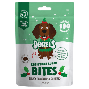Denzel's Christmas Lunch Bites are the ultimate way for your pooch to join in with the dinner this Christmas! Made with Turkey, Cranberries & stuffing, your dog will go crazy for these little tasty treats. Denzel's soft, squishy bites are made from natural ingredients, gently baked in the UK into tasty, bite-size treats. Don't worry they're low calorie so perfect for training or on-the-go. Composition: Chickpea flour, Sweet Potato, Vegetable Glycerine, Turkey (14%), Cold Pressed Rapeseed Oil, Carrot, Cranberry (0.5%), Mixed Herbs (0.5%)